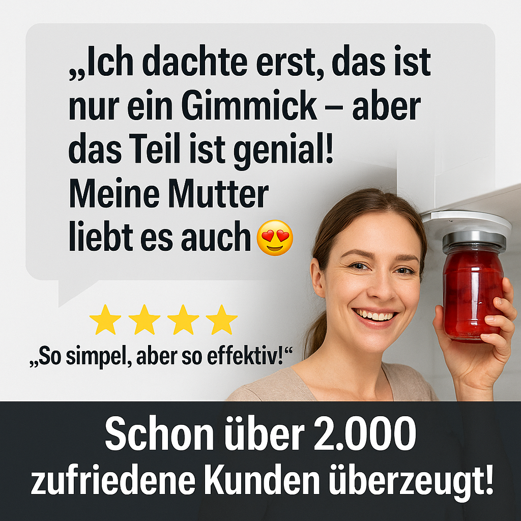Der EasyOpen Pro ist ideal für Familien, Senioren oder einfach jeden, der keine Lust mehr auf festsitzende Deckel hat. Einmal installiert, wirst du dich fragen, wie du jemals ohne ihn ausgekommen bist!