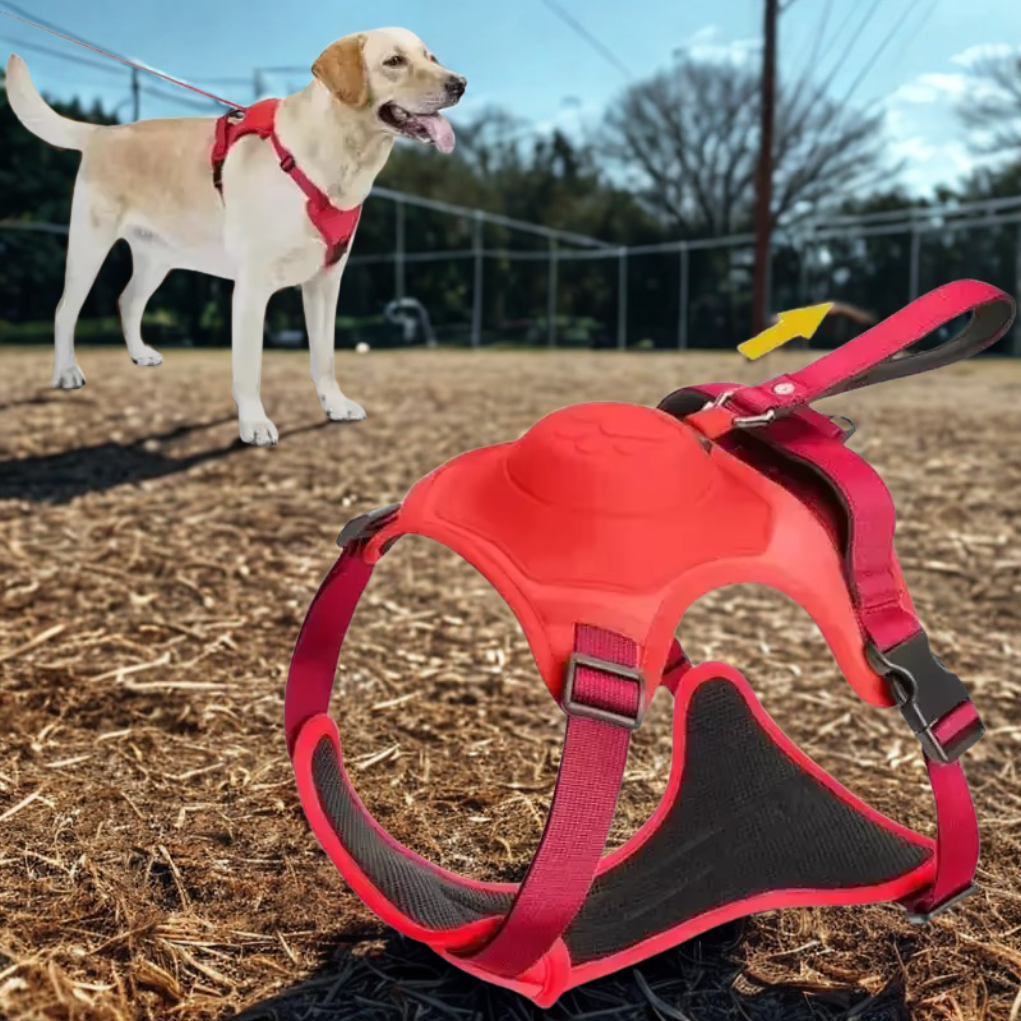 Die integrierte Leine ist direkt am Rücken befestigt und immer griffbereit, sobald du rausgehst.