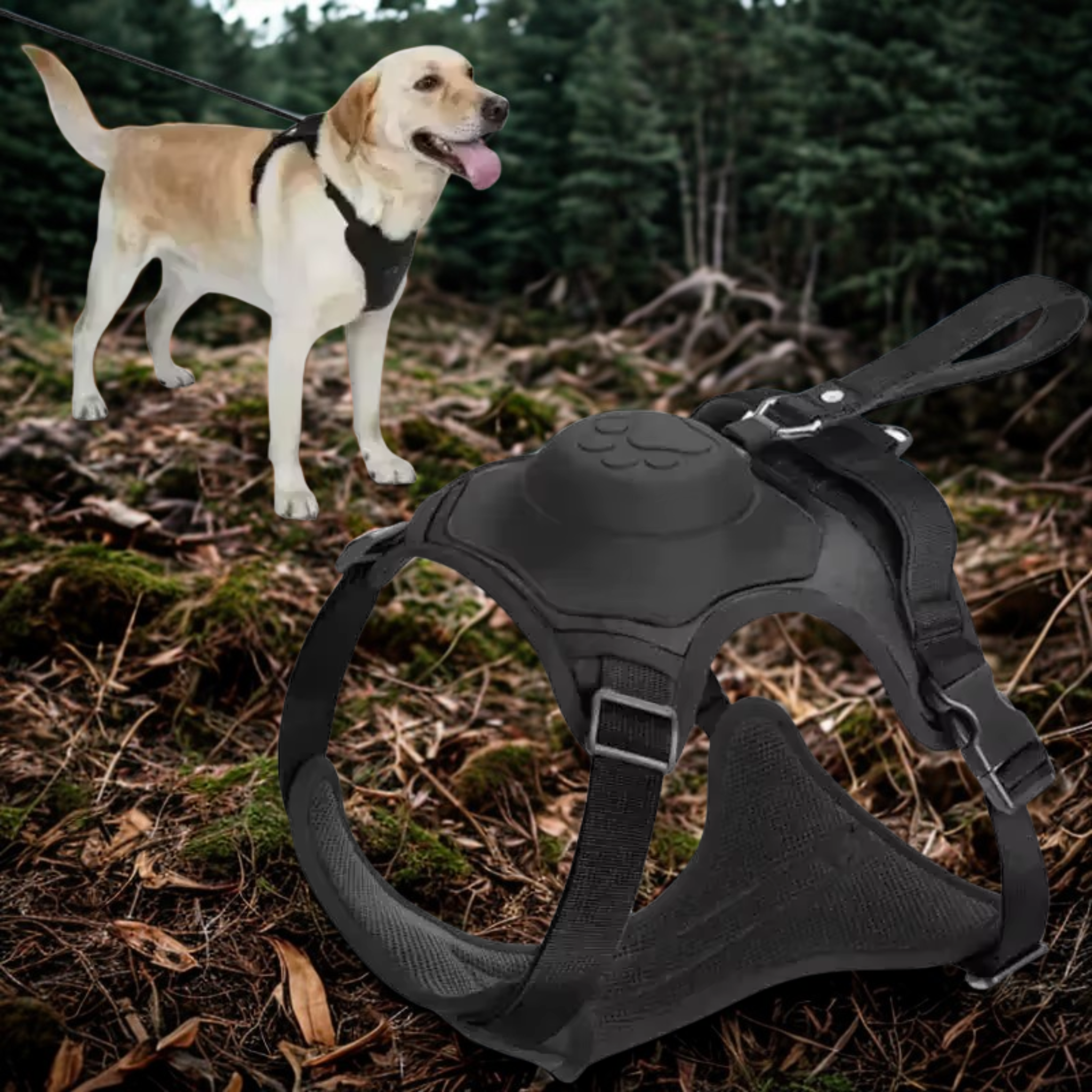 Bitte überprüfe vor jeder Nutzung den sicheren Sitz des Geschirrs und die Befestigung der integrierten Leine.